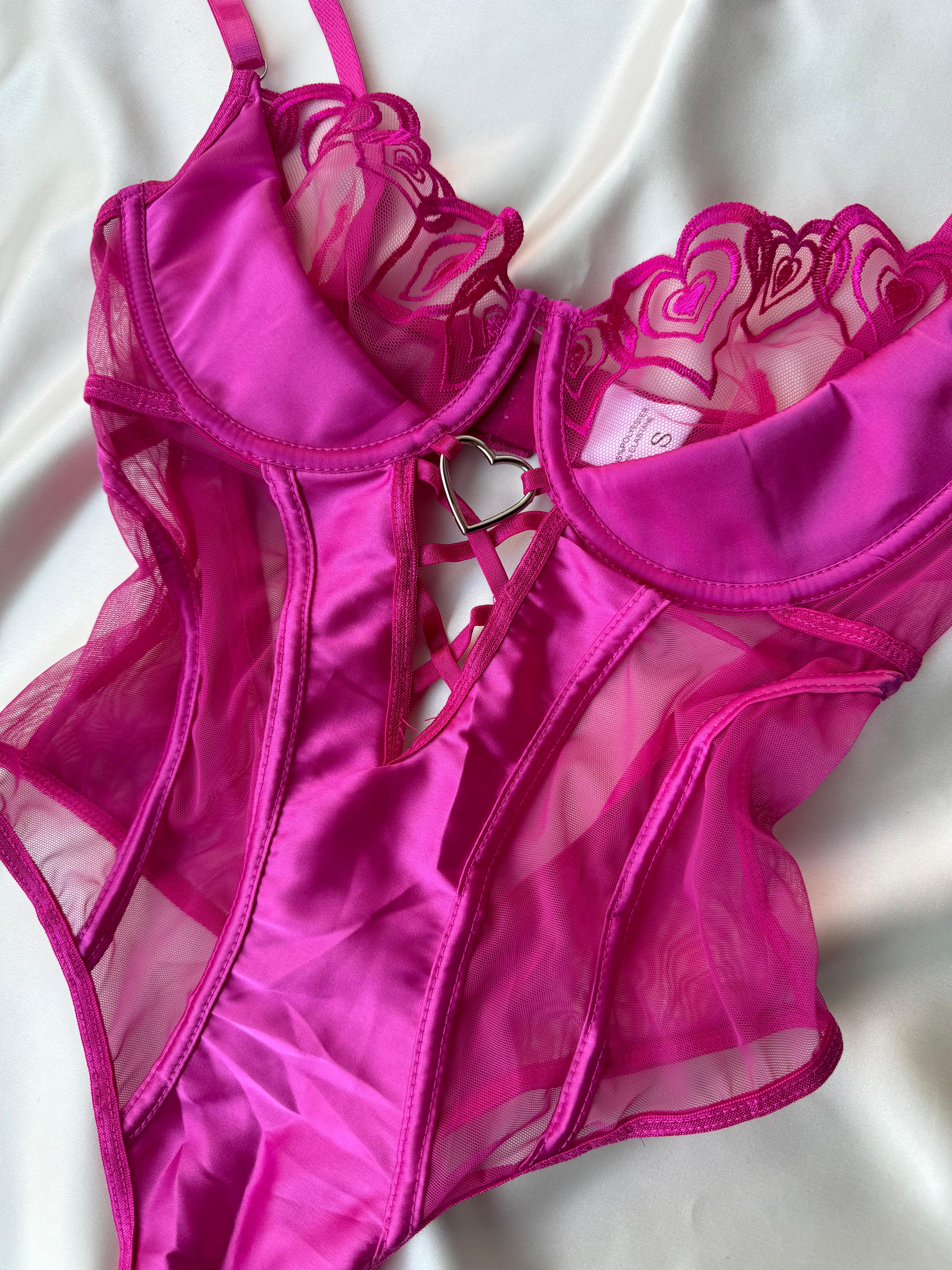 💓Crafted in a striking fuchsia hue, SAHAR features a luxurious combination of transparent fabric and silk, delicately adorned with heart motifs.💘